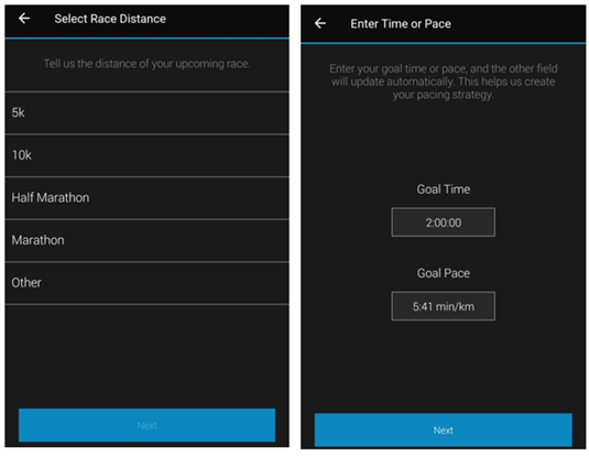 Sẽ đưa ra cho bạn các khoảng cách mặc định đó là: 5K, 10K, Bán Marathon, Marathon. Sau khi chọn xong => Thời gian mục tiêu cũng như tốc độ mục tiêu và bạn hoàn toàn có thể thay đổi mục tiêu này theo ý muốn của mình. Sau đó thực hiện Đổi tên kế hoạch luyện tập => Thay đổi các thông số theo ý bạn => Chọn “Chia dặm hoặc km” => Phía dưới có “Điều chỉnh nhịp độ để xem bạn sẽ bứt tốc ở đầu hay cuối quãng đường, đồng hồ Garmin sẽ tính toán tự động và chia thời gian” => Lưu kế hoạch tập luyện và bạn có thể thay đổi lại thông số.