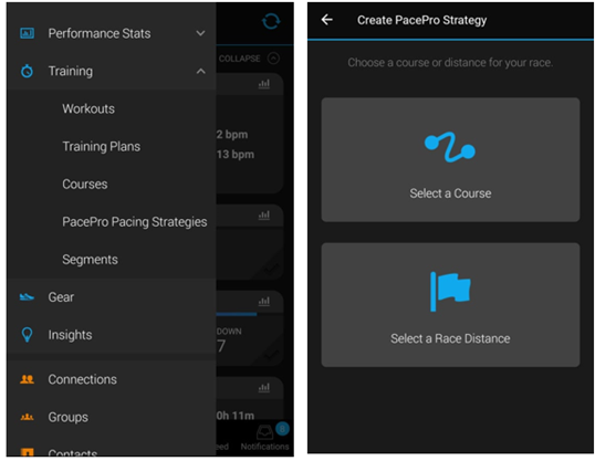 Truy cập vào ứng dụng Garmin Connect trên điện thoại hoặc web để tạo chiến lược PacePro