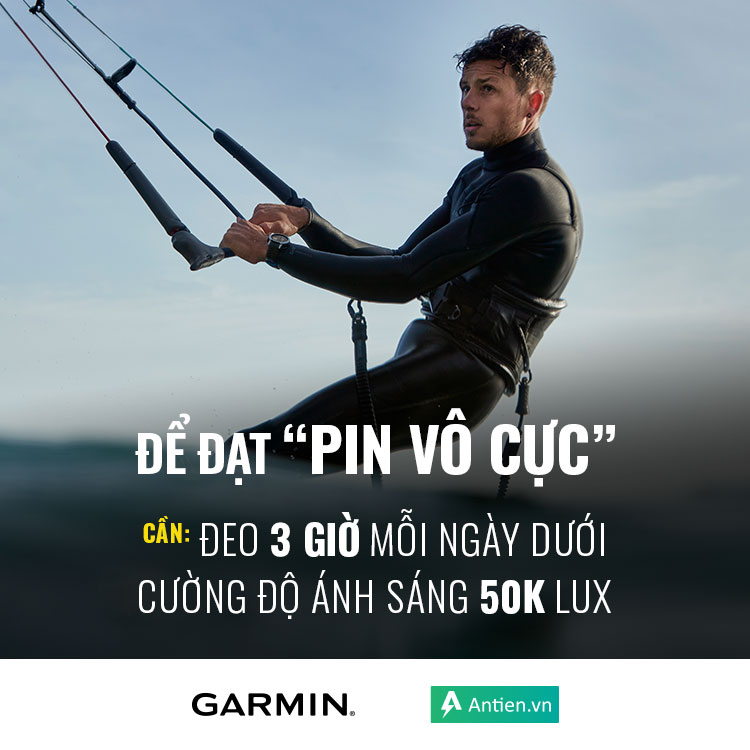 Để đạt được những con số mà Garmin chỉ ra trong các mô hình sạc bằng năng lượng mặt trời, người đeo phải sử dụng ít nhất 3 giờ mỗi ngày dưới cường độ ánh sáng 50.000 lux. Nó sẽ giúp bạn có 1 giờ sử dụng GPS hoặc 1 ngày đồng hồ thông minh/ thời gian chờ.