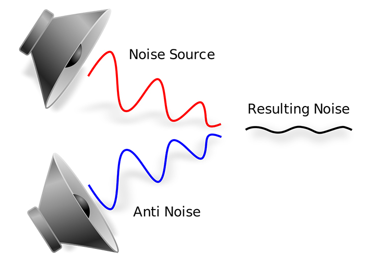 Khác với việc chống ồn bằng vật lý như trên, tai nghe chống ồn chủ động sử dụng công nghệ điện tử để triệt tiêu các âm thanh môi trường. Bằng việc sử dụng nhiều micro để thu lại âm thanh của môi trường bên ngoài sau đó hệ thống điện tử trong tai nghe sẽ phân tích và tạo ra những âm thanh ngược pha với chúng. Hai luồng sóng âm ngược chiều này gặp nhau sẽ tự triệt tiêu, do đó bạn sẽ không còn nghe thấy những tiếng ồn bên ngoài nữa. Tuy nhiên nghe qua thì thấy nó đơn giản như vậy nhưng để thực hiện được việc này thì không phải là dễ bởi do âm thanh truyền đi với tốc độ rất nhanh và nếu thực hiện đúng như theo các bước trên thì trong thời gian hệ thống phân tích âm thanh thu được để tạo ra âm khử ồn thì tiếng ồn đó đã đi được vào bên trong tai của bạn. Vậy giải pháp để khắc phục ở đây là gì?