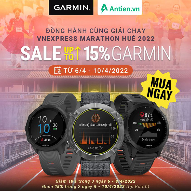 Đồng hành cùng giải chạy VnExpress Marathon Huế 2022, Garmin – An Tiến gửi tặng nhiều ưu đãi cho khách ghé tham quan và mua hàng. Cụ thể: