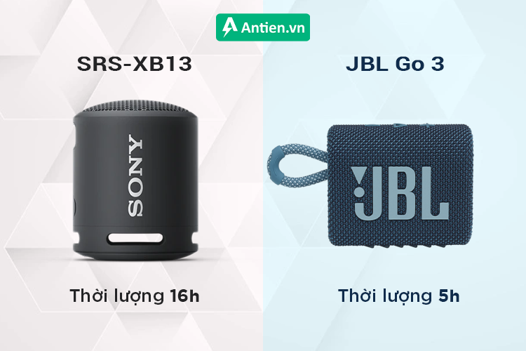 Thời lượng pin của JBL Go 3 và Sony SRS-XB13