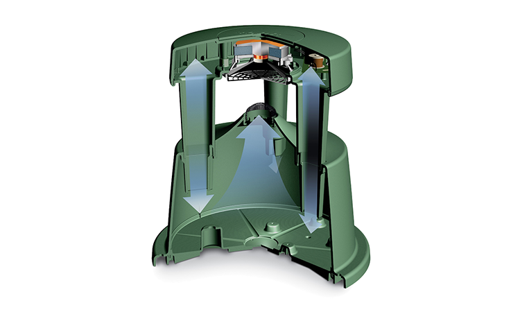 Loa ngoài trời thiết kế bề mặt phản xạ âm ngay trong thân loa để đáp ứng đủ âm trầm
