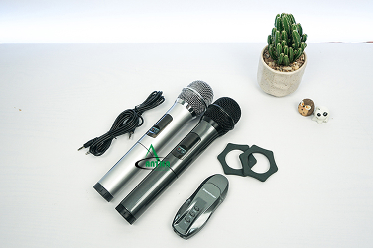 Bộ sản phẩm bao gồm 2 micro tự tin phục vụ tốt cho cả nhu cầu hát đơn ca lẫn song ca của bạn, cả 2 chiếc mic vỏ đều được làm bằng nhựa, cùng bộ thu phát tín hiệu nhỏ gọn rất thuận tiện cho bạn mang đi chơi, du lịch. một dòng micro bán cực kỳ tốt của An Tiến