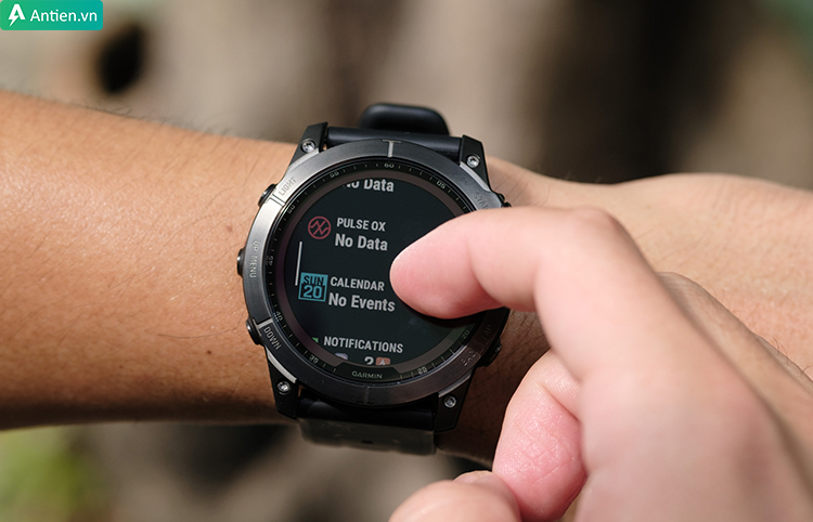Điểm sáng nhất trên Fenix 7X Solar là màn hình cảm ứng giúp bạn dễ dàng mở và xem thông tin, cũng như di chuyển từ màn hình này sang màn hình khác, nhất là khi xem bản đồ.